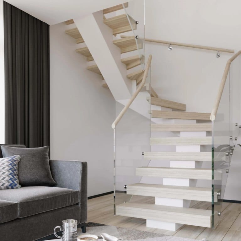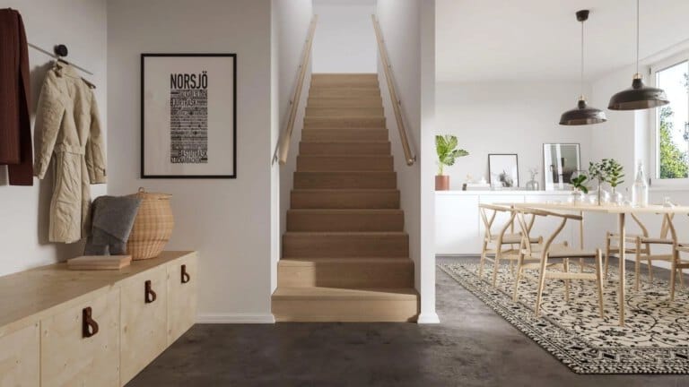 Därefter bestämmer man sig för träslag och ytbehandling av trappan eller trappans detaljer. Det finns olika träslag att välja mellan på trappan eller tex trappstegen (plansteg). Det går också att välja om trappans delar skall vara mattlackade, laserade för en nyanserad träskänsla eller täckmålat i en kulör du önskar.